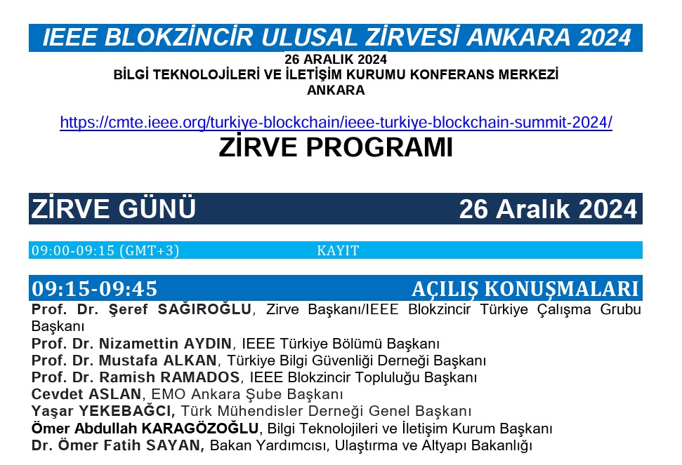IEEE BLOKZİNCİR ULUSAL ZİRVESİ 26 Aralık 2024 tarihinde Ankara' da gerçekleştirilecektir. Program ve ayrıntılara linkten ulaşabilirsiniz. ...