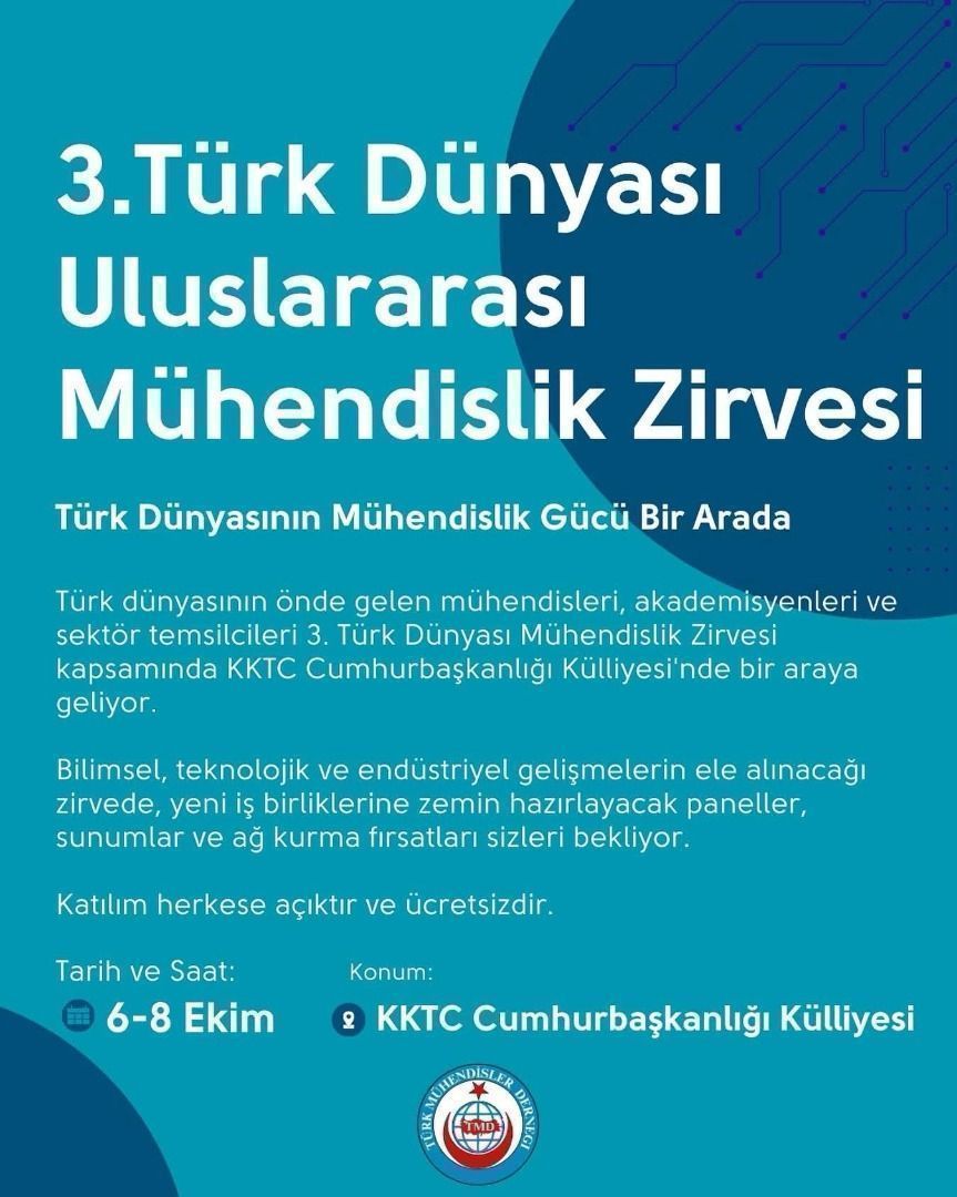III. Türk Dünyası Uluslararası Mühendislik Zirvesi Tarih: 6-8 Ekim 2025 Yer: Kuzey Kıbrıs Türk Cumhuriyeti, Cumhurbaşkanlığı Külliyesi, Lefkoşa, KKTC 1....